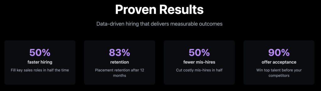 And given that hiring the wrong person can cost around $80,000–$150,000 annually for a mid-level rep and much more for senior roles, this not only saves you time but can save your company a ton of money in the long run.